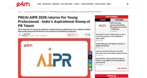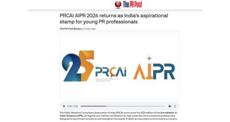 The Accreditation in Public Relations (AIPR) by the Public Relations Association of India (PRCAI) is a premier certification for high-potential communications professionals. It recognises young and emerging strategic thinkers, ethical leaders and those who are ready to take on and add their contribution to the future of communications. Globally benchmarked, AIPR validates and celebrates professionals who excel as thinkers, strategists, planners, writers, and creative practitioners, committed to continuous learning and excellence.