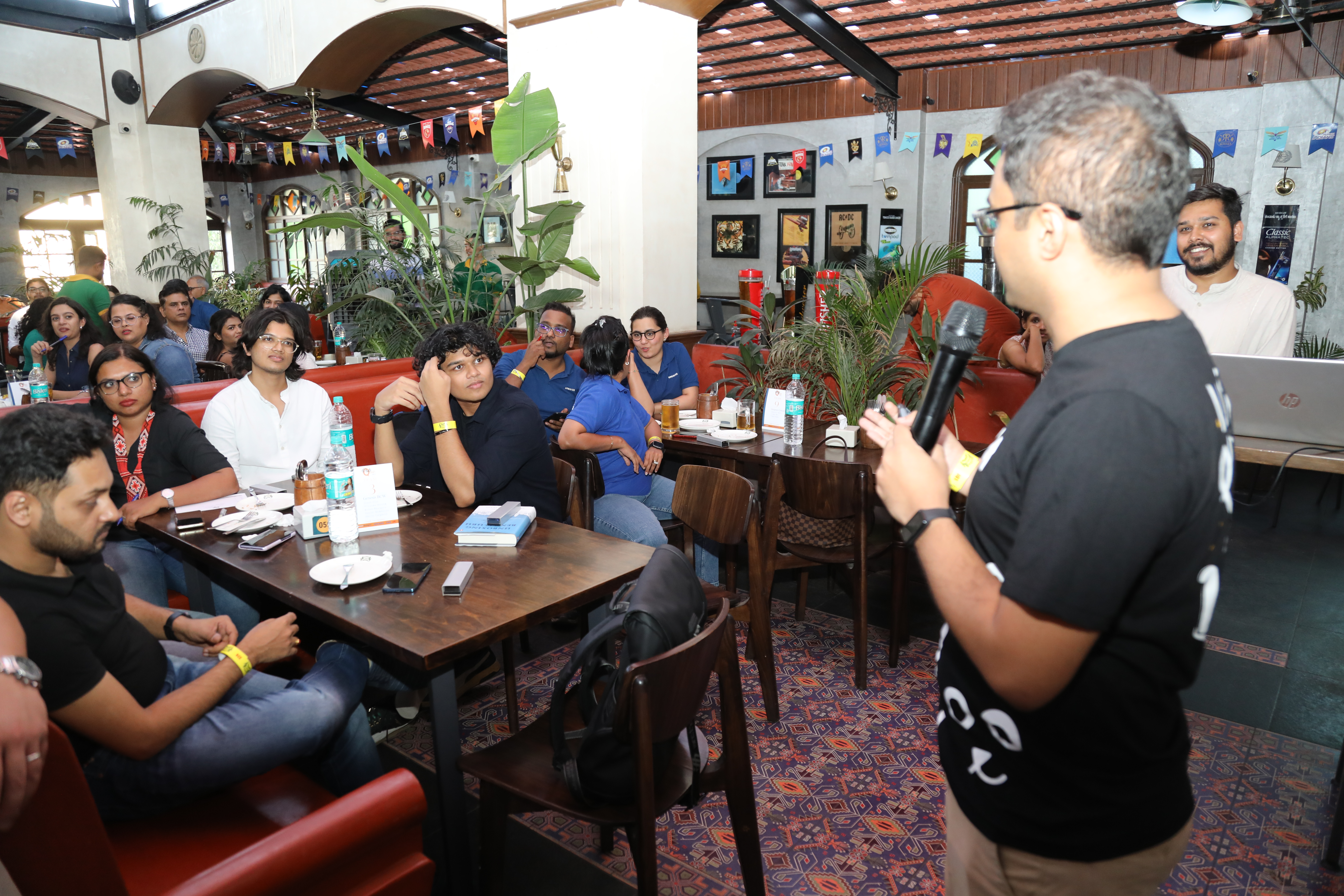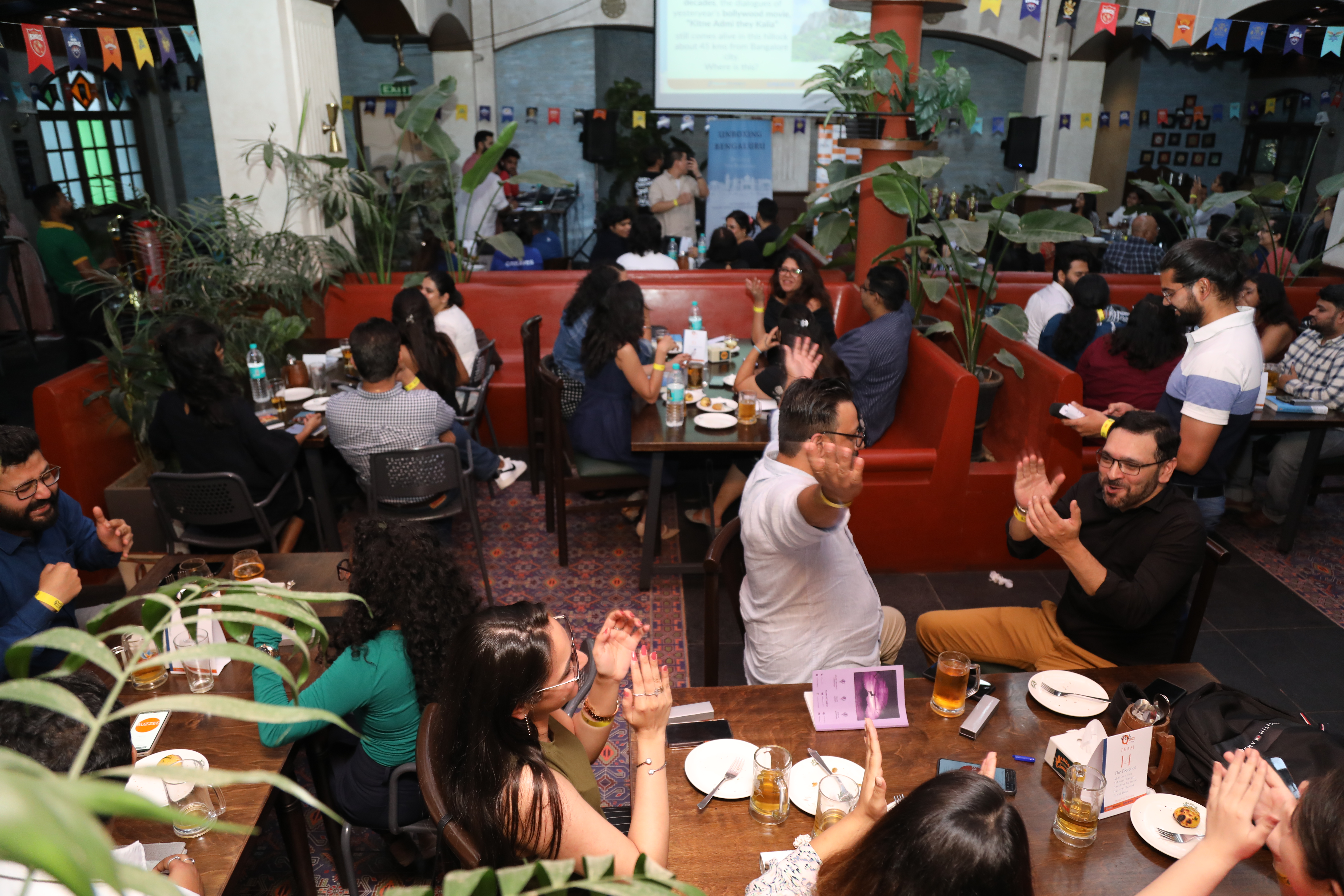 And the curtains rose as @Girisham1, Founder of @OnPurposeComms rolled out the red carpet with a hearty dose of enthusiasm at the first-ever Pub Quiz in Bangalore!#PubQuiz #PRCAI pic.twitter.com/nHV7xs7pr8